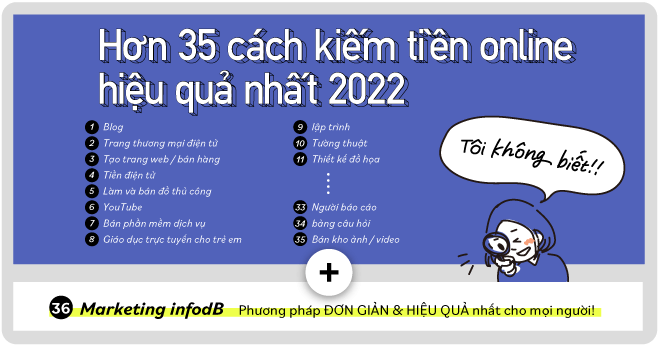 Mình biết có nhiều bạn rất muốn bán hàng online hay làm thê gì đó online để kiếm thêm thu nhập nhưng như mình đã phân tích ở trên những phương pháp kiếm tiền online hot nhất năm 2022 thì hẳn mọi người cũng thấy có những rủi ro về chi phí ban đầu, giao nhận hàng hay tồn kho... và để giải quyết bài toán này tại sao bạn lại không thử Affiliate với infodB.vn