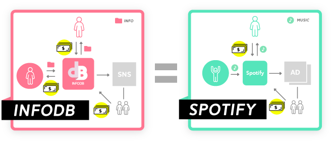 Còn ở infodB còn phát triển hơn ở chỗ là bạn cũng có thể chở thành vai trò như những người nghệ sỹ ở trong Spotify và ngay cả khi bạn không thể tạo ra 1 tác phẩm bạn cũng có thể cống hiến và kiếm tiền giống tư cách 1 bạn Fan ở trong đó.